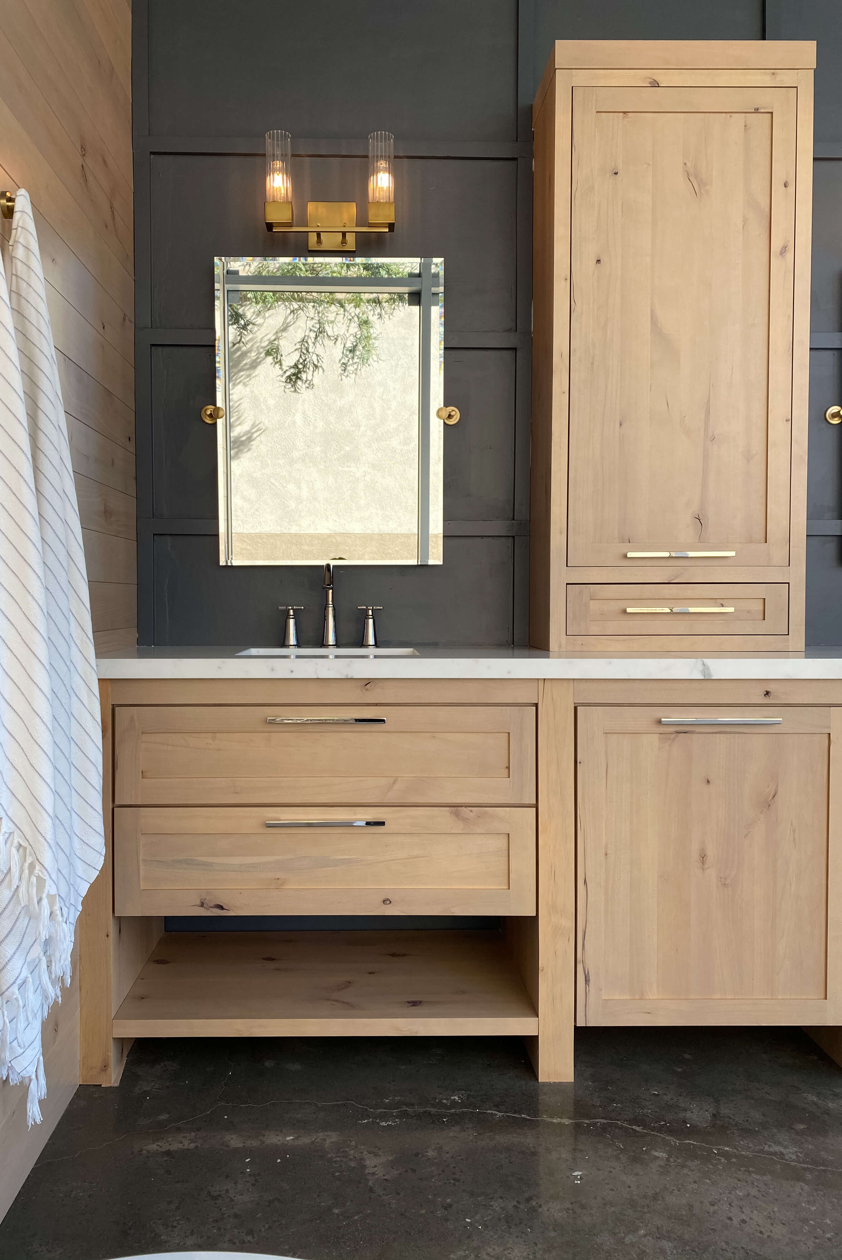I’m sure many of you have noticed how stained cabinetry is slowly making a comeback, and what better way to show off beautiful brown stains than applying it to Knotty Alder. Knotty Alder is a smooth hardwood with coloring similar to cherry, but without the upcharge. The natural knots and cracks add the visual texture that is so popular in design right now, while the low sheen of the stains adds a softness to any room. You’ve already seen this wood species in a couple of previous projects, but lets look at some more!