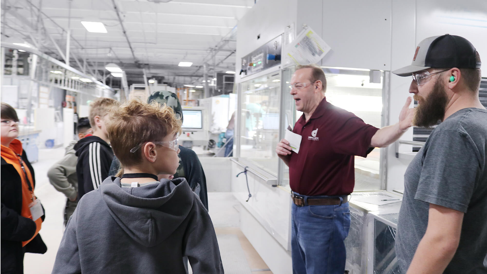 Factory Tour for the Kids Switch Day students and exploring the Finish Department.
