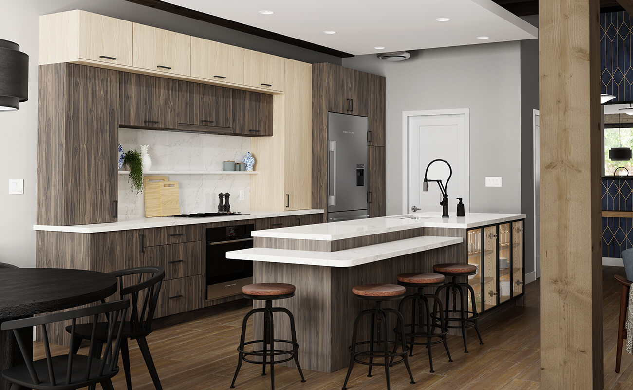 Dura Supreme Cabinetry features new creative textures for island back panels, Reeded and Batton!