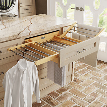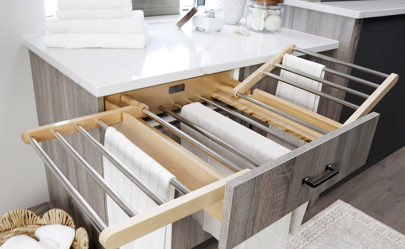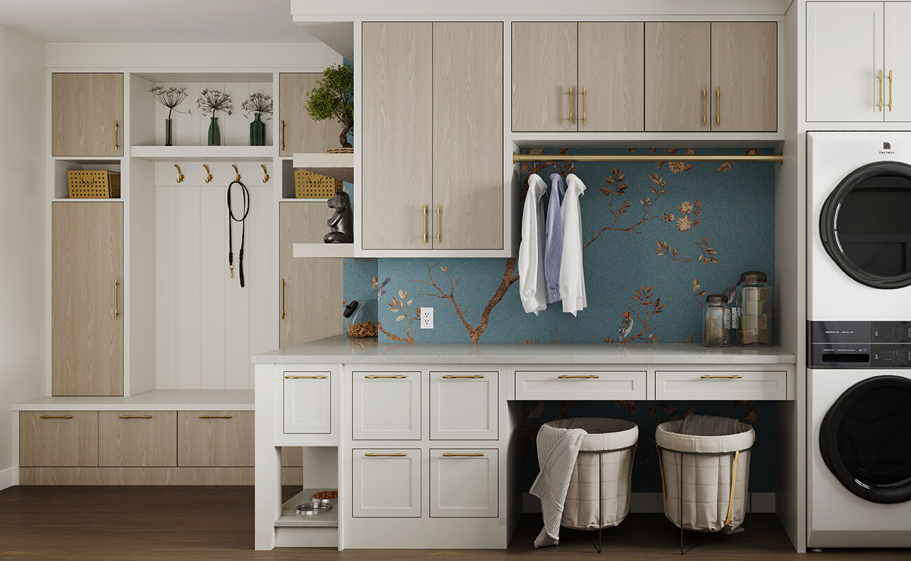 The laundry room is no longer a cramped utility room hidden in the corner of a dark basement. Today’s most innovative home designs are bringing laundry spaces into the light, placing the laundry room in mudrooms, home entrances, and near or sometimes attached to bedrooms. These reinvented laundry spaces offer a fresh canvas to create stunning, inviting, multi-tasking work zones that enhance daily living.
