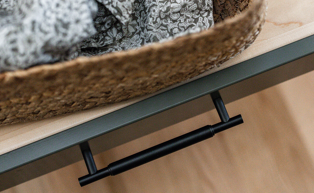 Available for Bria Frameless Cabinetry in a slab door style (matching edgeband).