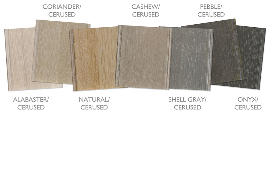 Add an extra level of character and distinction to Quarter-Sawn White Oak cabinetry with our newest artisan crafted finish collection, Cerused Finishes! Our Cerused finishes beautifully enhance the wood grain with a subtle wash that highlights the grain. Available in 7 trendsetting colors.